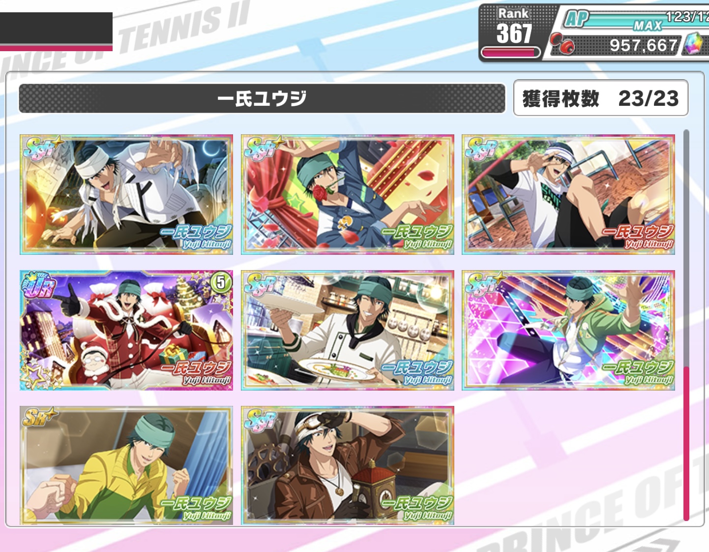 最後の毎日10連ガチャと次にユウジくん来た時のために貯めてた分ぶん回したおかげでユウジくんはコンプできた。
